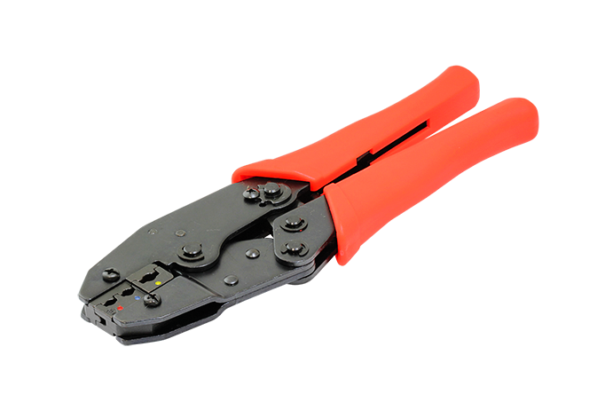 Crimpadora de terminales aislados rojos, azules y amarillos.