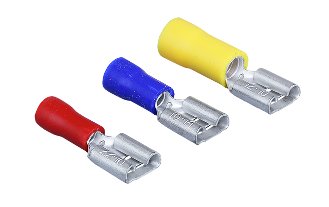 Terminales hembra de crimpado de empalme rápido aislado en nylon, tipo faston.